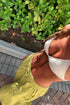 Las telas texturadas de color liso pueden desteñir y perder intensidad con el uso, la exposición al sol y los químicos de las piletas. Evitar el contacto de la bikini húmeda con otras prendas y el roce de la misma con superficies ásperas para no dañar la lycra.